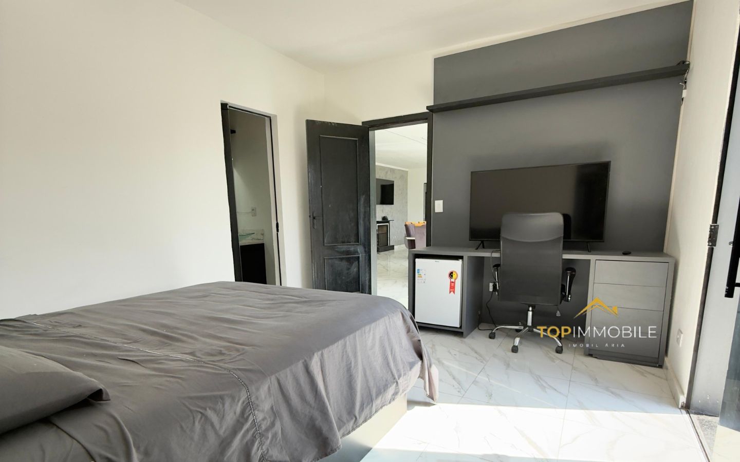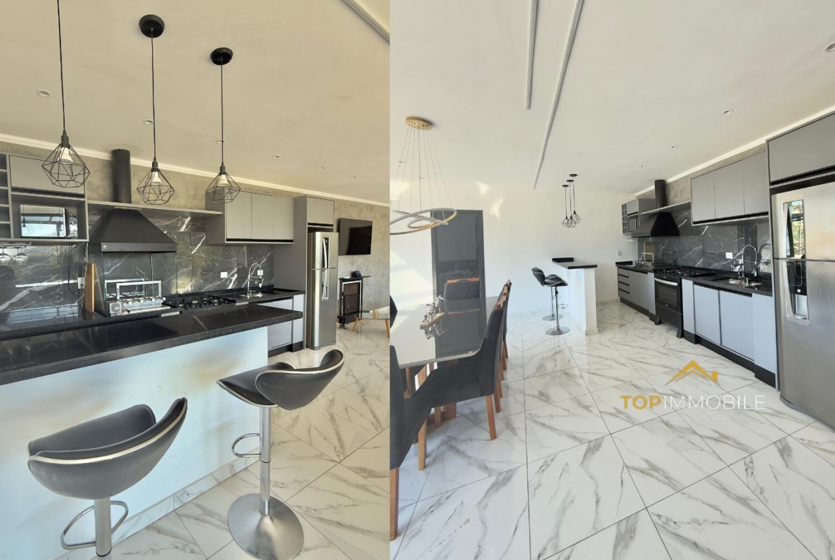 - Cozinha planejada com bancada em granito e churrasqueira integrada, unindo praticidade e sofisticação.