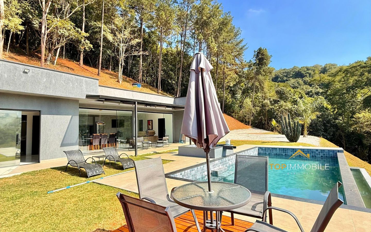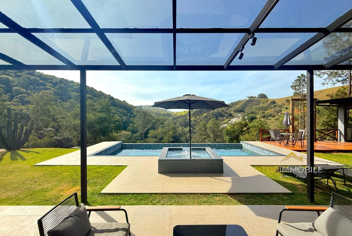 - Terreno amplo de 22.000m², cercado pela natureza e com total privacidade. Área construída 226,72 m², Piscina 39,20 m²
